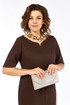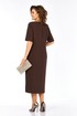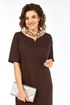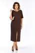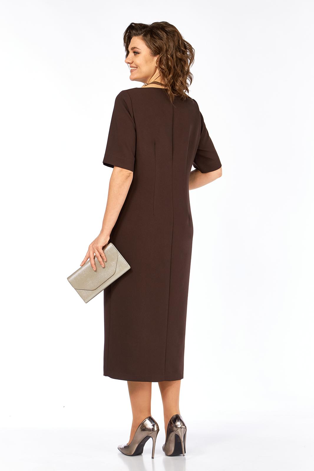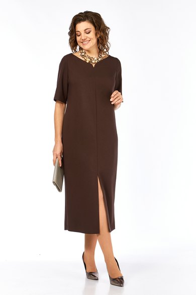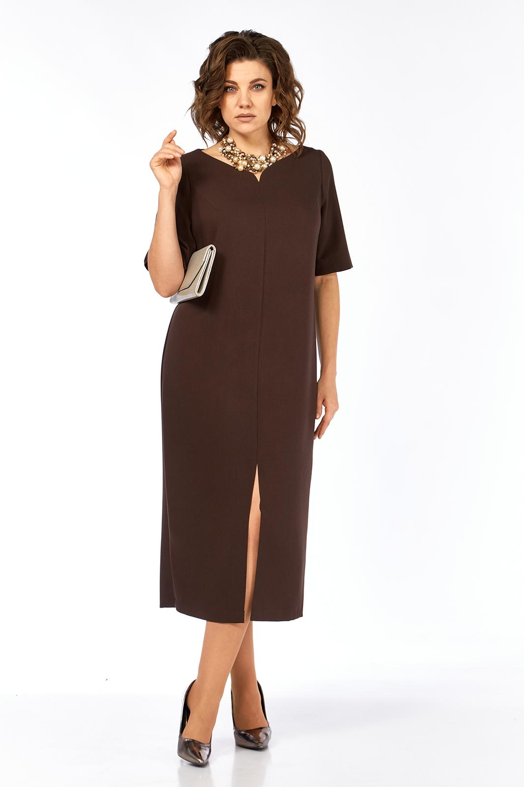 Платье женское , полуприлегающего силуэта, выполнено из плательно-костюмной ткани. Горловина фигурной формы. Перед с нагрудными вытачками и средним швом в котором обработан разрез. Спинка со средним швом. Рукава втачные, одношовные с небольшим разрезом по шву.