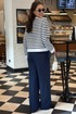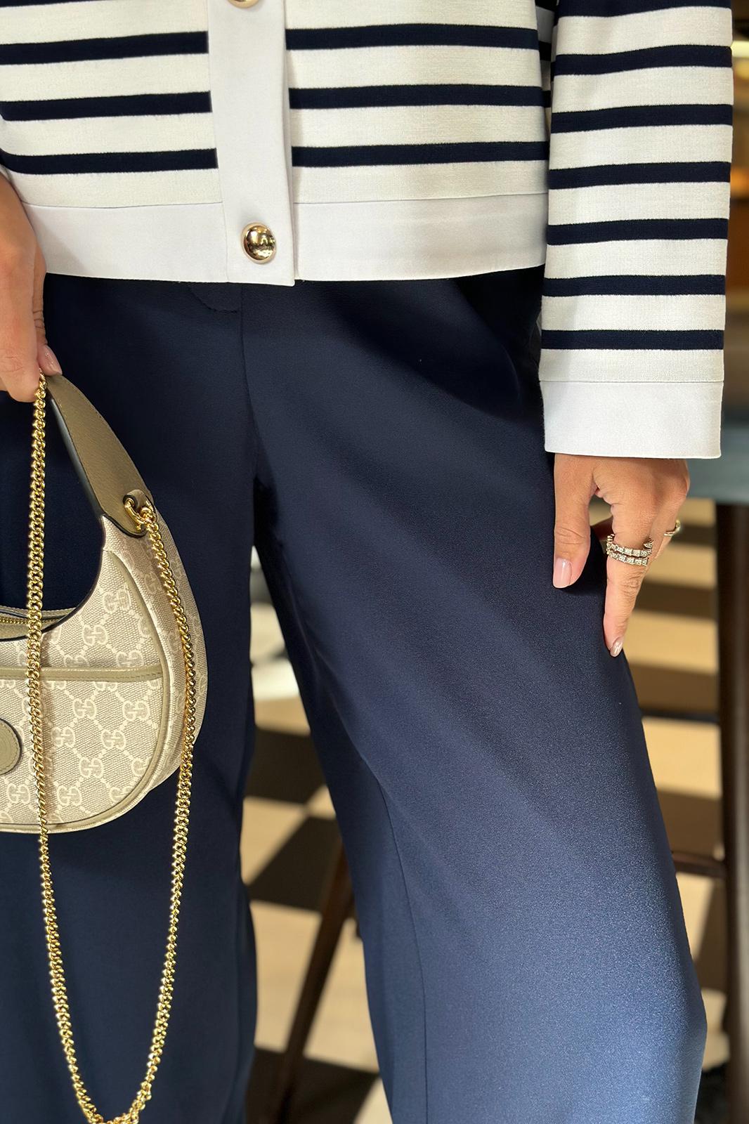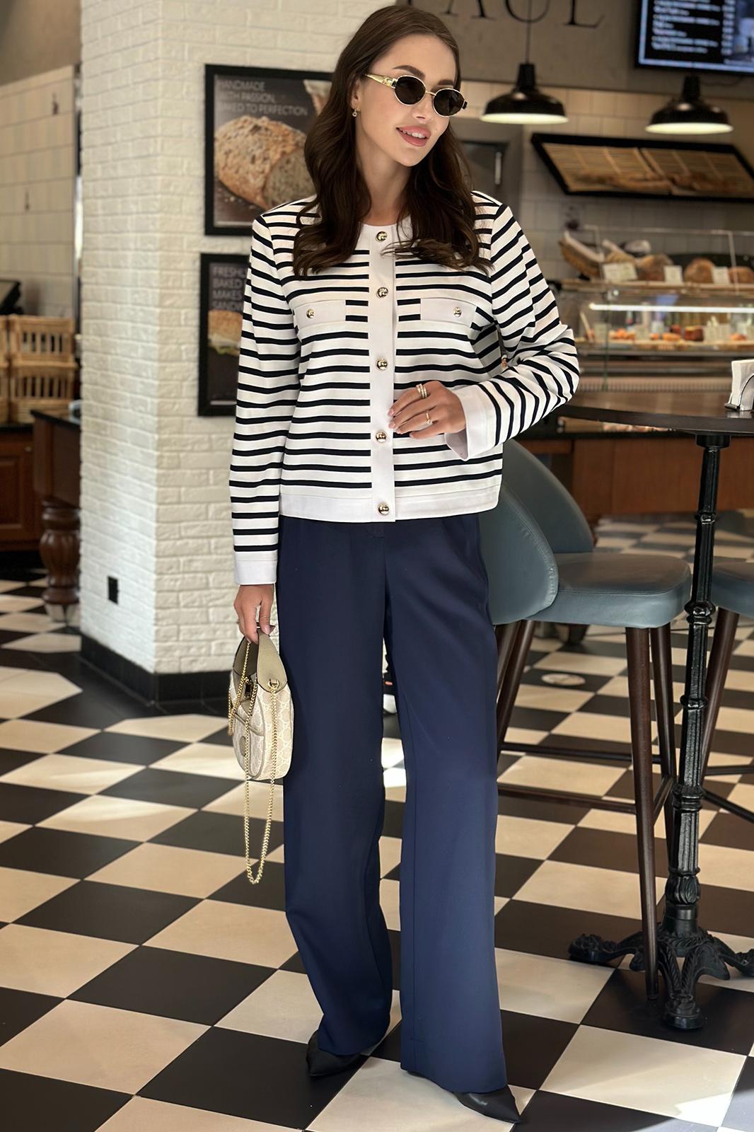 Брюки женские прямого силуэта. По переду обработана застежка на молнию. По задним половинкам брюк застрочены вытачки. В боковых швах обработаны боковые карманы. Пояс притачной, по переду с застежкой на пуговицу, по задней части на резинке.Цвет материала может отличаться по тону в зависимости от настроек вашего монитора!