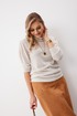Блуза женская прямого силуэта из трикотажной ткани длиной ниже линии бедра. Горловина обработана отложной стойкой. Рукав ¾ втачной одношовный. По верху рукава заложены складки, по низу рукава притачная манжета.