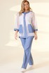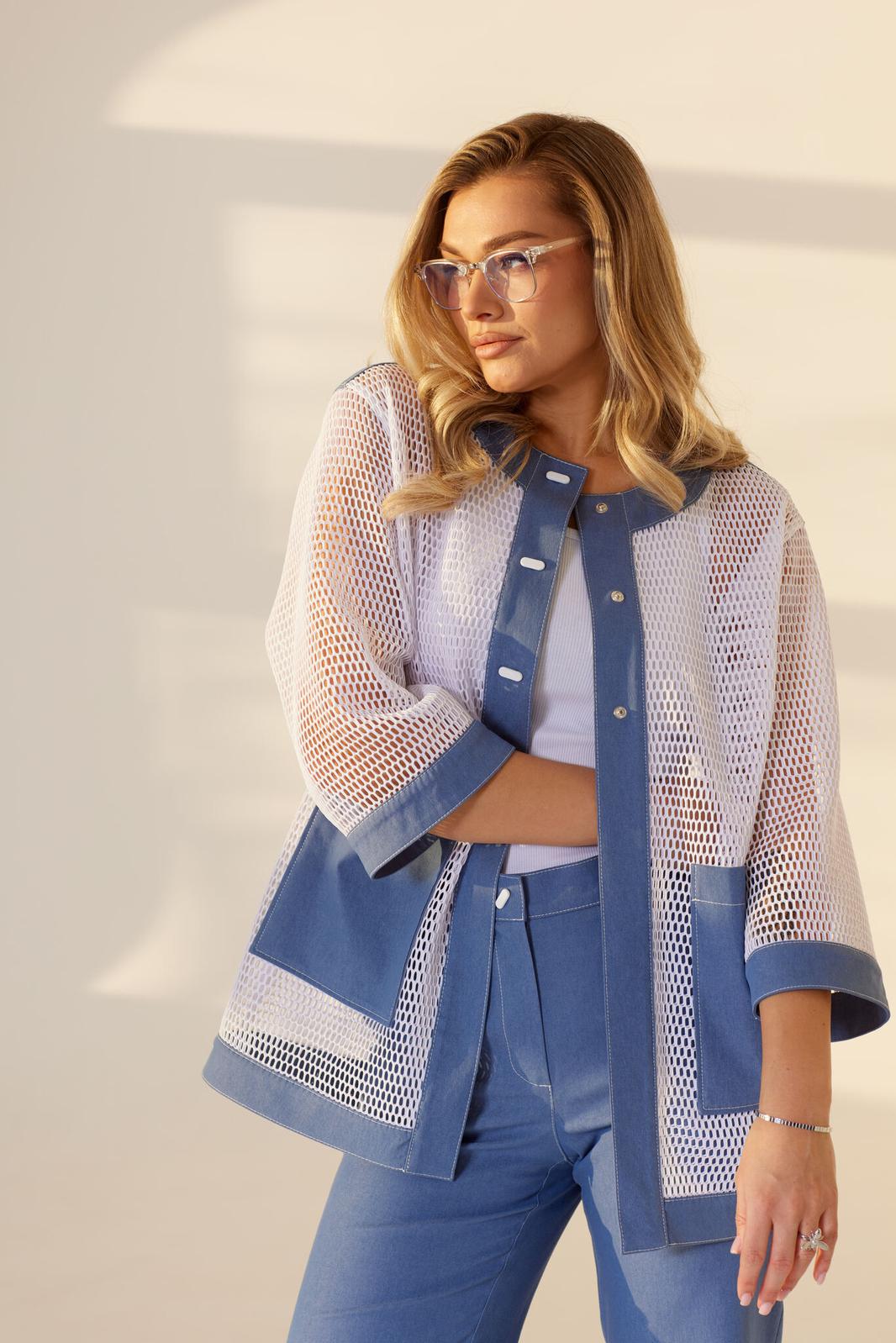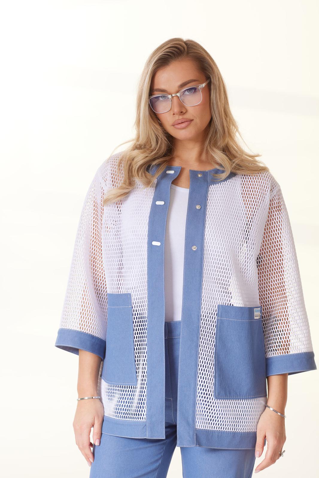 Длина жакета по спинке 44р. - 72,5 см, 54р. - 72,5 см. Длина рукава от горловины 60 см. Длина брюк по боковому шву 113 см.