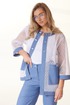Комплект женский, состоящий из жакета и брюк. Жакет женский, прямой, с центральной застежкой на кнопки. Перед, спинка и рукав выполнены из ткани-компаньона. Остальные элементы и брюки выполнены из основной ткани. По переду настрочены накладные карманы, левый декорирован нашивкой, застрочены нагрудные вытачки. Спинка с отстроченной кокеткой. Плечевой шов смещен на перед. Рукав втачной. Горловина, край борта, низ жакета обработаны притачными планками с отделочной строчкой. Брюки прямые. Спереди обработана застежка на молнию. Сзади застрочены вытачки. В боковых швах обработаны карманы. Декоративные элементы и фурнитура могут отличаться от заявленных на фото. Цвет материала может отличаться по тону в зависимости от настроек вашего монитора!