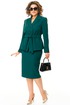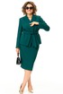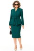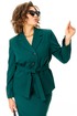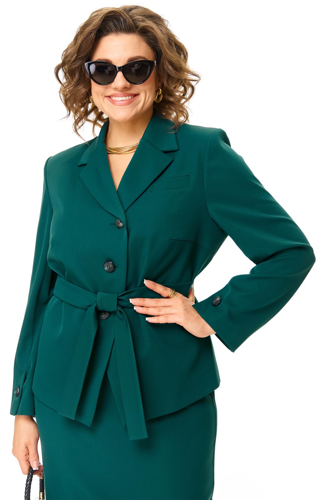 Жакет прямого силуэта. По переду нагрудные выточки, декоративная листочка. Воротник пиджачный. Застёжка центральная на 3 петли и пуговицы. Перед на подкладке. Рукав втачной двушовный, на передней половине внизу рукава отлетная шлица с декоративной пуговицей. Спинка прямая со средним швом. Приталивание жакета за счет съёмного мягкого пояса из основной ткани.