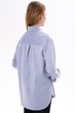 Базовая, хлопковая рубашка в полоску. Линия плеча спущена. Рукав длинный на манжете. По переду накладной карман и застёжка на пуговицы. Низ изделия фигурный