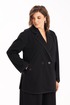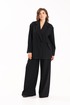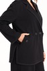 Костюм состоящий из жакета и брюк. Жакет прямого силуэта со спущенной линией плеча и двубортной застёжкой. Все края жакета с сырыми срезами, которые отстрочены контрастной ниткой. Спереди два кармана с клапанами. Брюки прямые от бедра на резинке по талии с карманами по бокам.