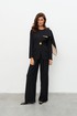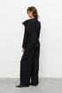 Брюки-палаццо на поясе с застёжкой на крючок и молнию с защипами по переду и карманами по бокам.
