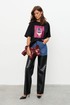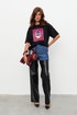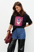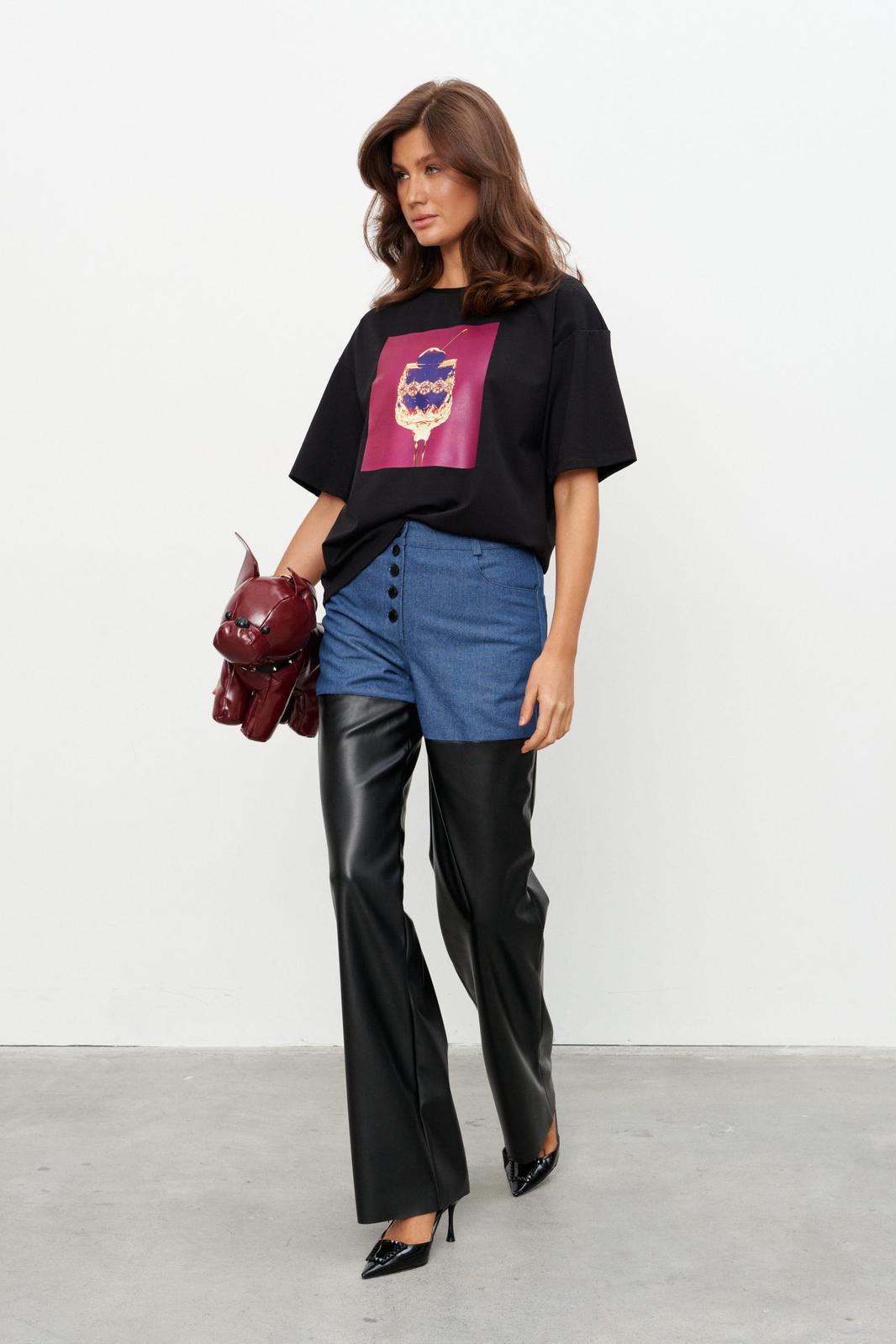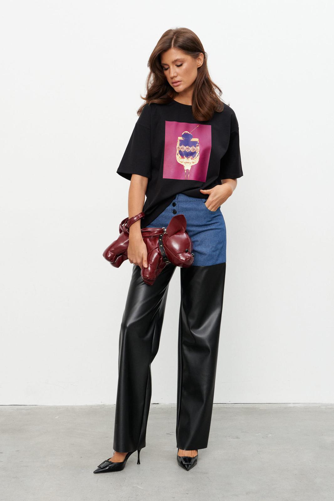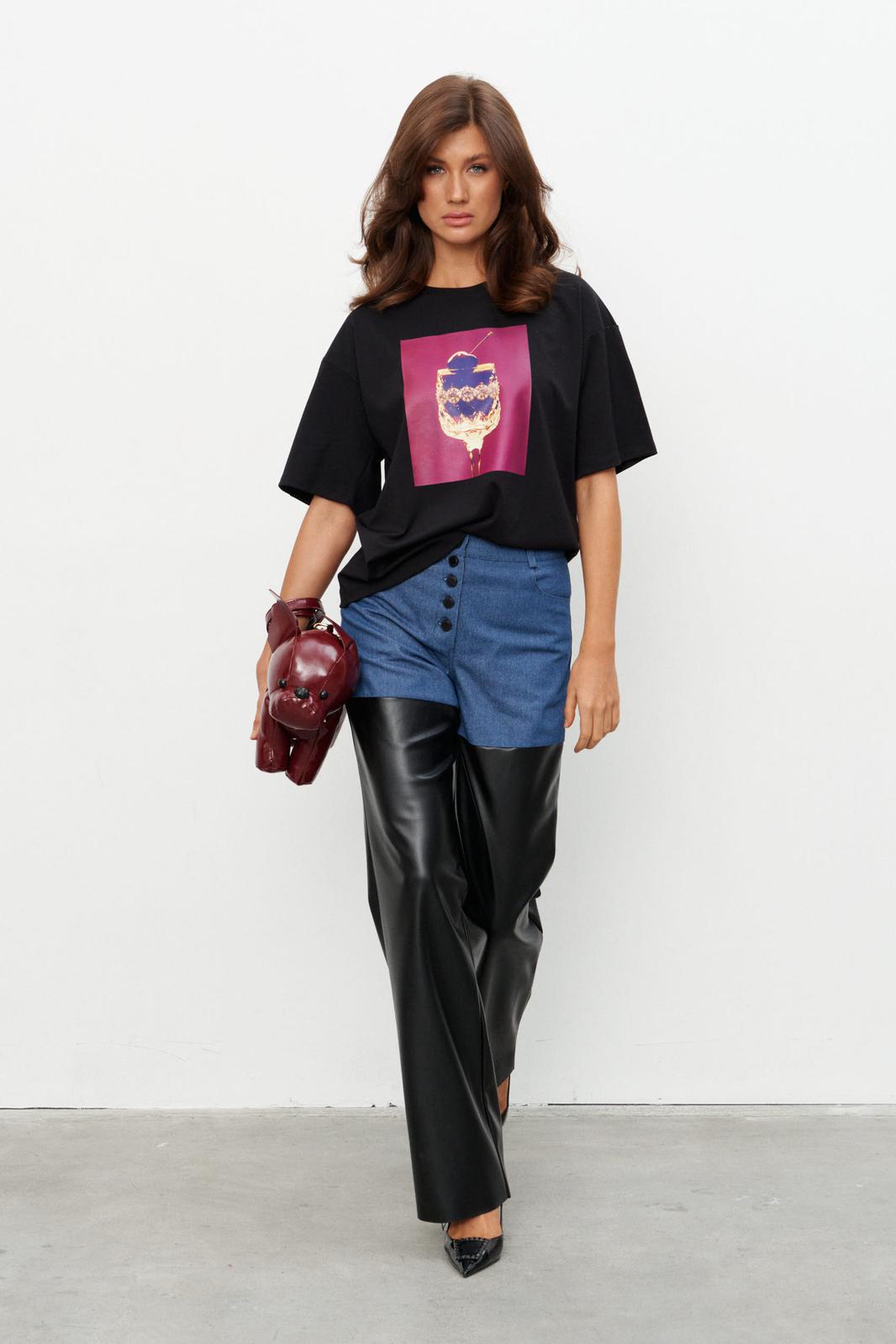 Оверсайз футболка из плотного трикотажа с ярким принтом «бокал». Линия плеча спущена, горловина отделана эластичной бейкой.