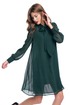 Платье свободного силуэта, расширенное к низу, выполнено из шифонового полотна с воротником-стойкой переходящим в бант. Рукава в изделии втачные одношовные со сборкой по низу с отрезной манжетой на 3 петли и пуговицы. Платье на подкладке. Ремень не входит в комплект.