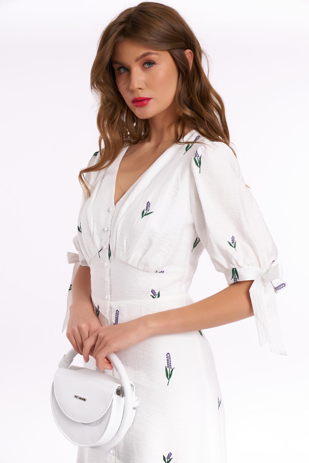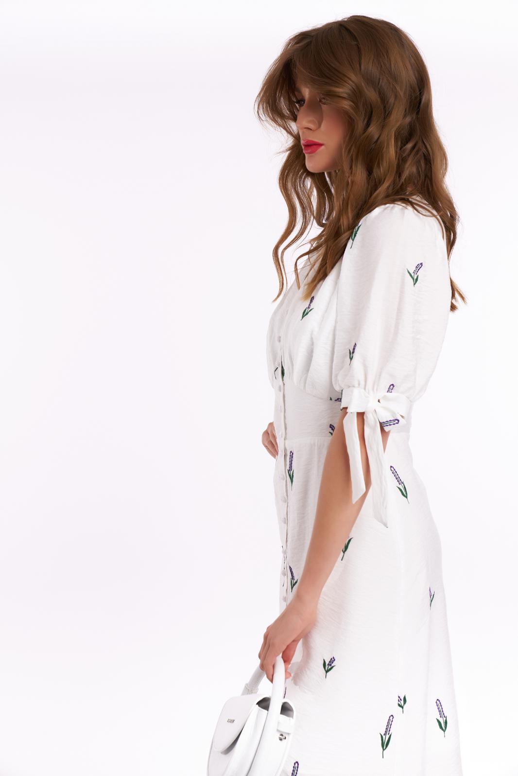 Нежное женское платья прилегающего силуэта, отрезное по линии талии.