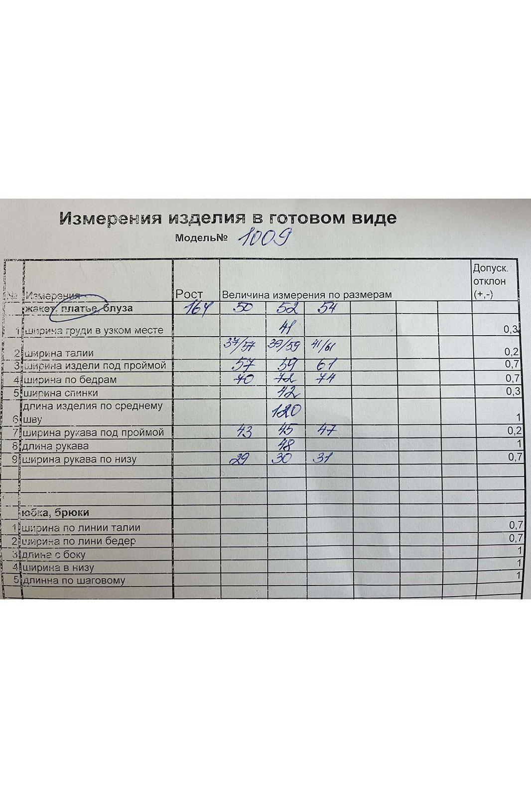 Горловина круглая с неглубокими складками, вырезом «капелька» по центру переда и стойкой. В стойку вставлена невысокая рюша и плоский шнур из основной ткани, завязывающийся на бант. Рукав втачной ¾, на манжете, с рюшей по низу. В качестве дополнительного декора использован ремень.