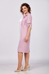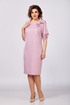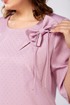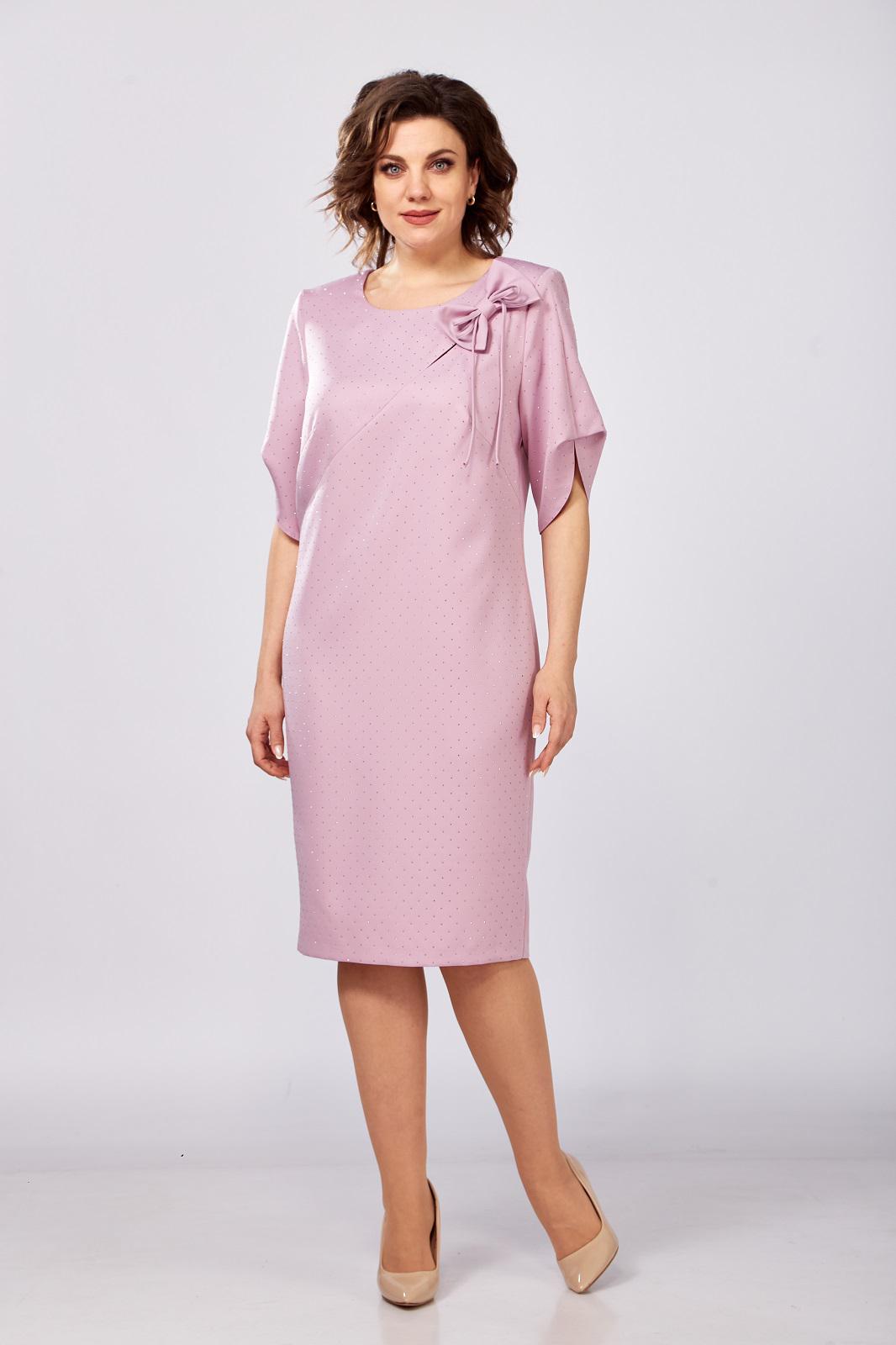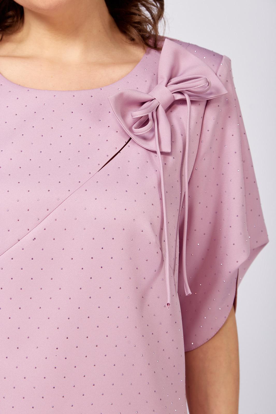Нарядное женское платье из облегченной плательной ткани со стразами в цвет, полуприлегающего силуэта, длиной чуть ниже колена. Вырез горловины круглый. По спинке центральный шов с застежкой на потайную молнию и небольшим разрезом внизу. Элегантность модели придает оригинальный фигурный втачной рукав и декоративный бант с шнуром.