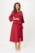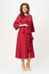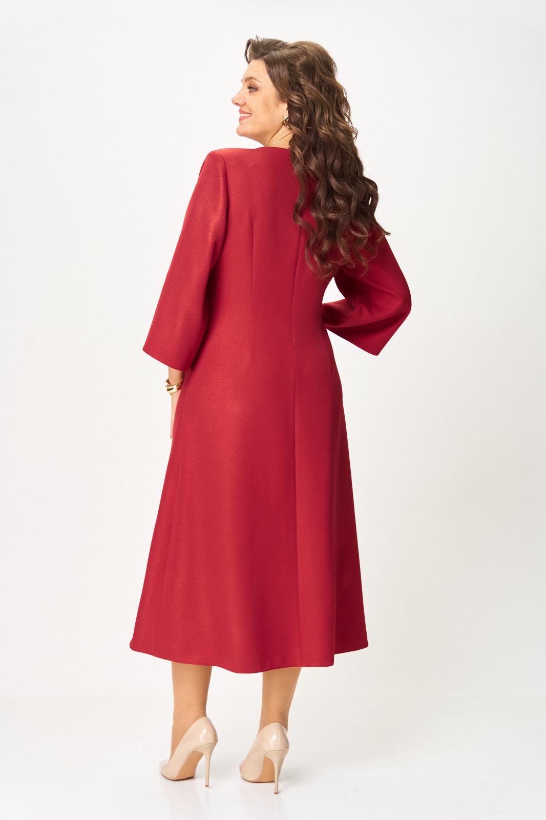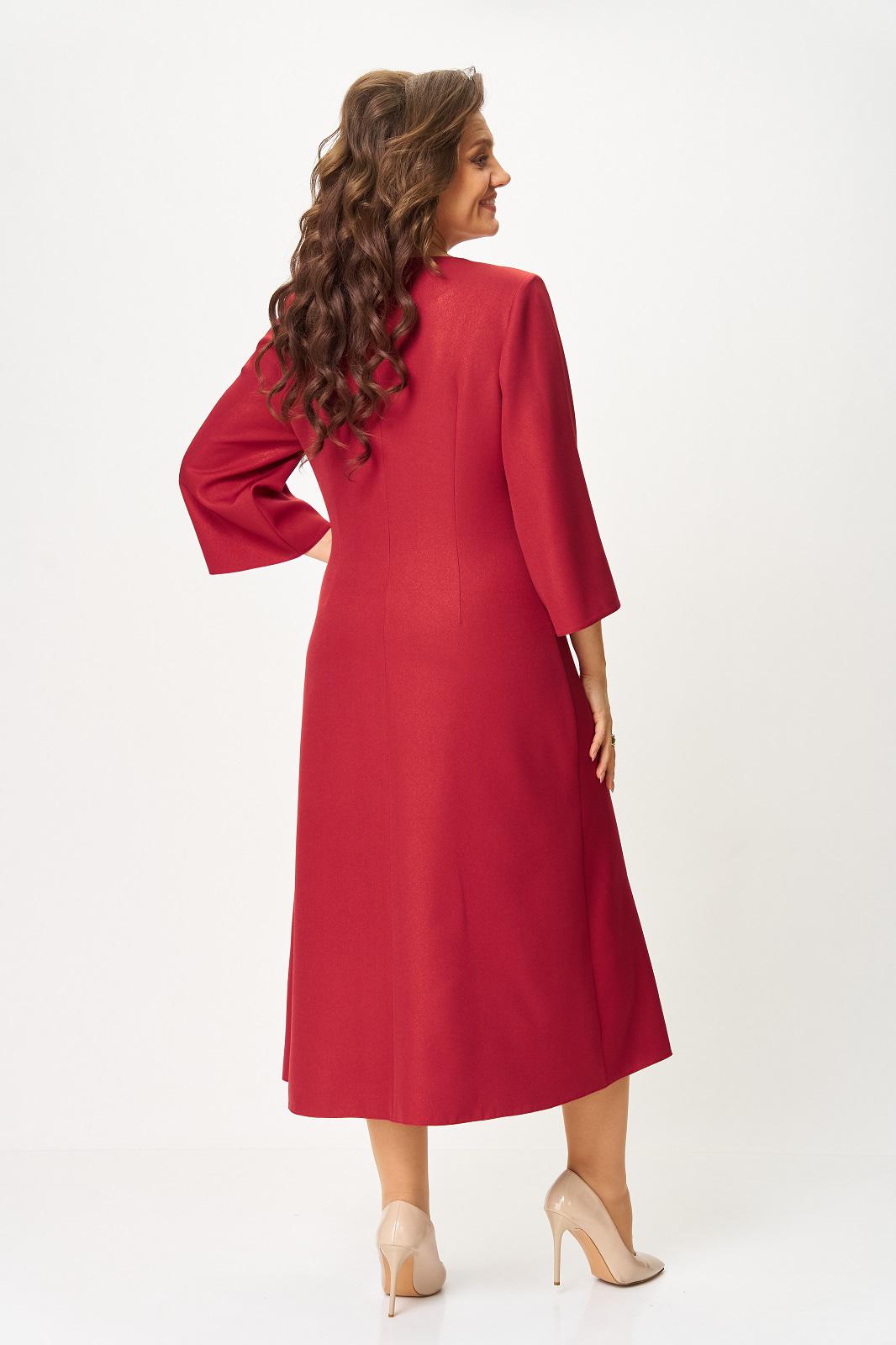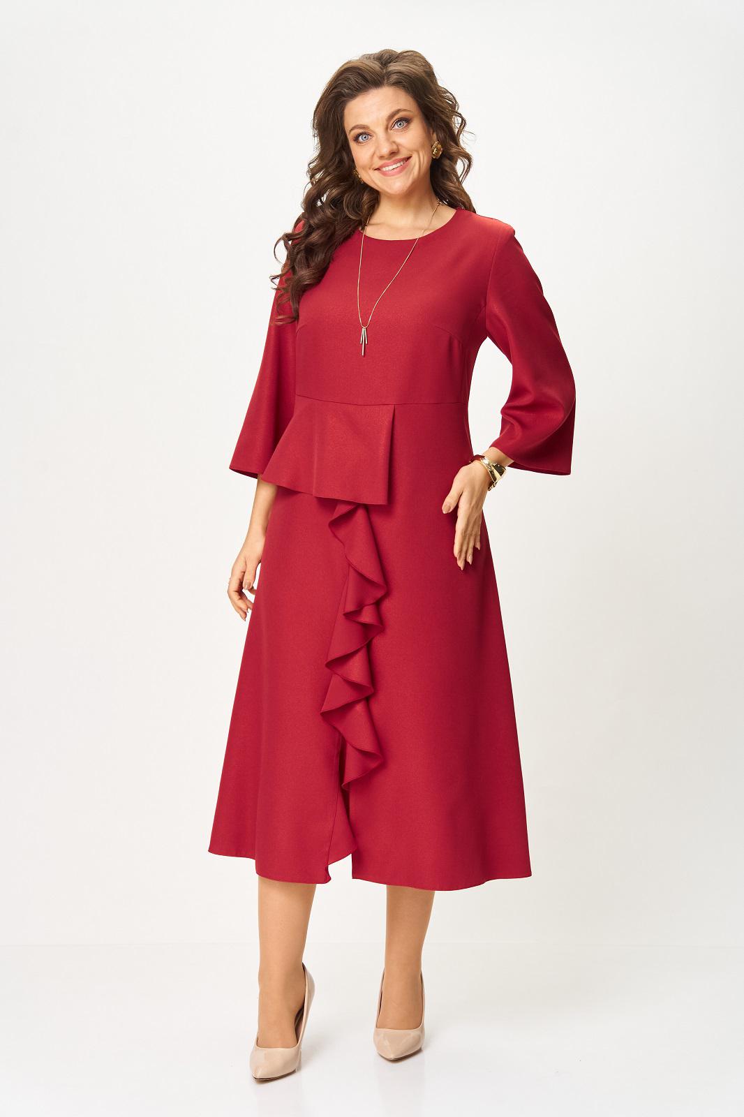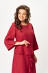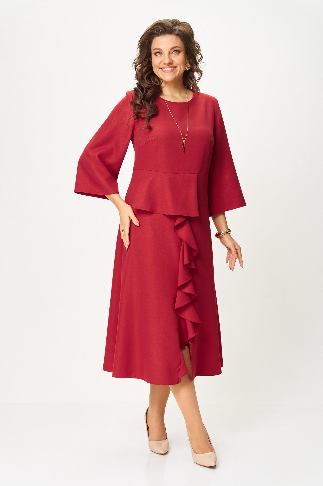 Нарядное женское платье из плательной ткани с легким блеском. Удлиненное, силуэт полуприлегающий, по переду отрезное по линии талии, с баской, воланом в шве и высоким разрезом по низу, вырез горловины круглый, с застежкой на потайную молнию в среднем шве по спинке, рукав 3/4 расширенный к низу.
