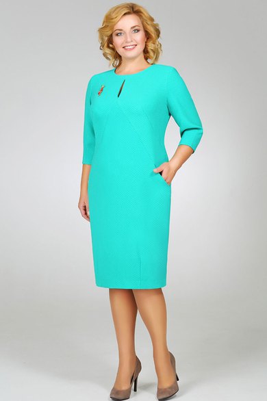 Платье женское свободного покроя. По переду выполнены рельефные швы в которых расположены карманы. В области горловины небольшая слезка. Рукав втачной 3\4. По низу рукава и низу платья выполнены декоративные швы. Пикантность данной модели придает съемная брошь. Длина платья 101 см, длина рукава 45 см.