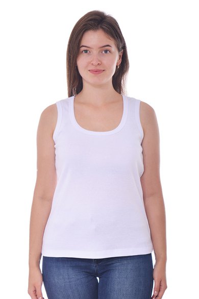 Майка женская полуприлегающего силуэта на бретелях. Верхние срезы заработаны бейкой. Низ изделия обработан швом вподгибку.