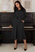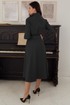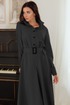 Платье женское из текстильной ткани. Платье отрезное по линии талии, юбка расширена к низу, в боковых швах карманы.