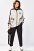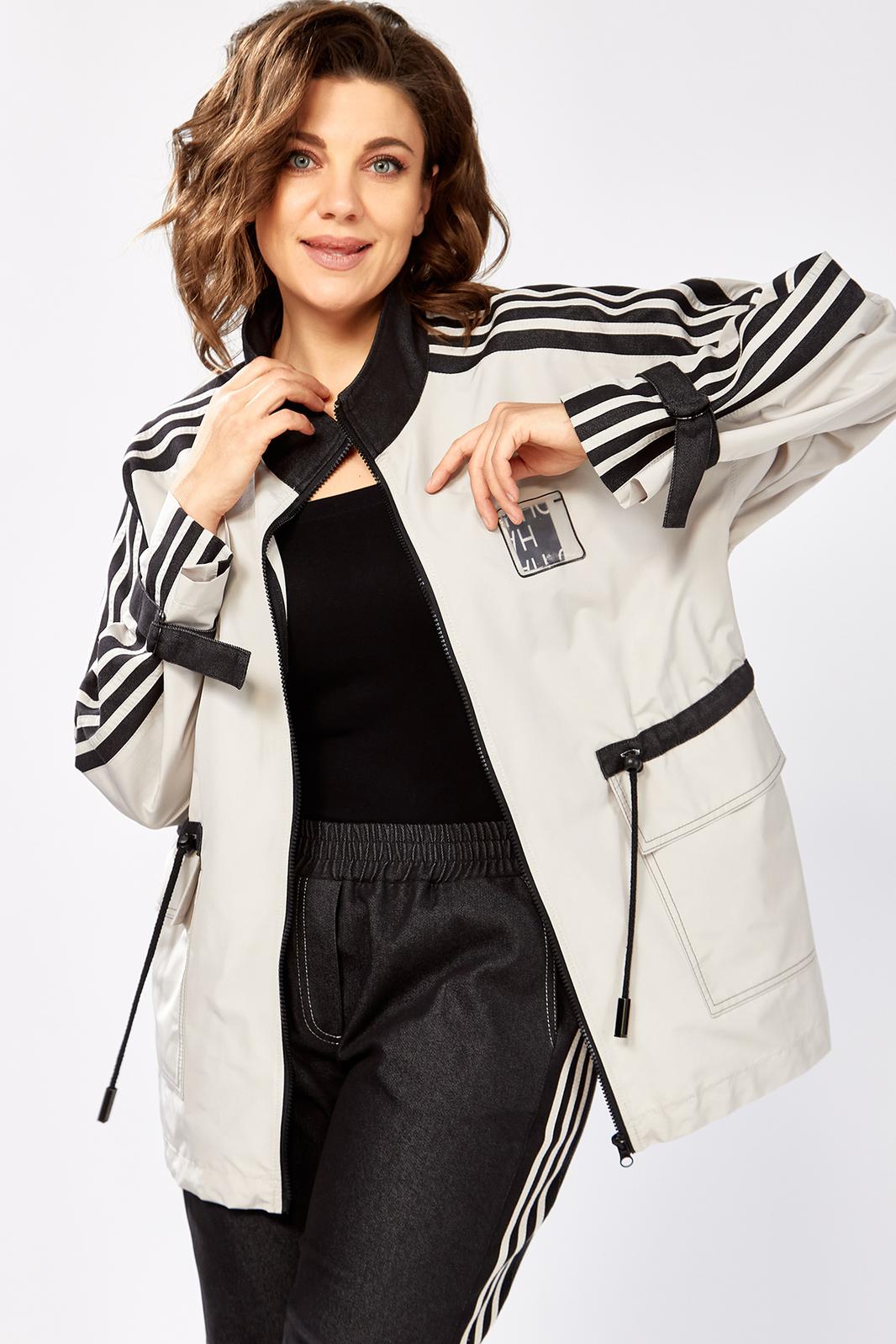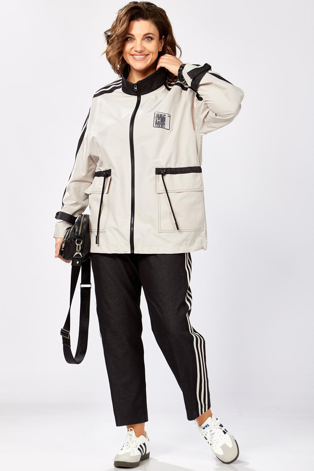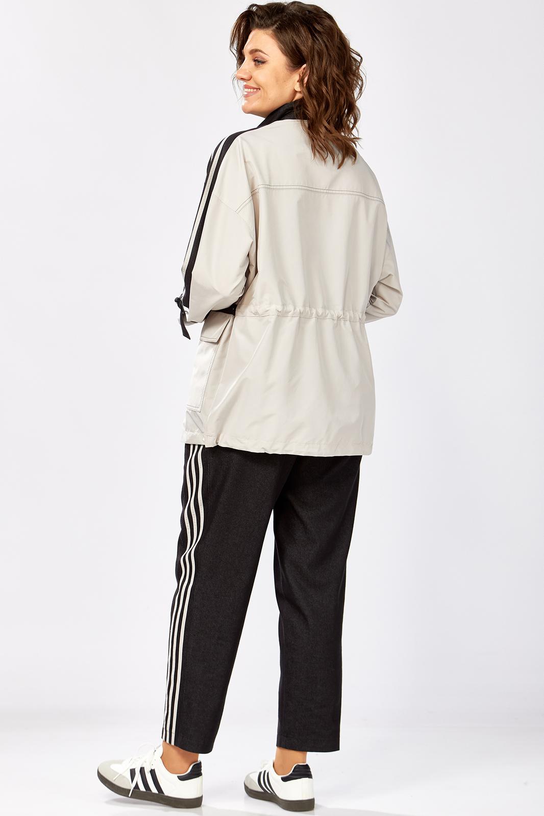Комбинированный брючный премиум комплект в стиле спорт шик для внесезонной носки. Удлиненная куртка-ветровка без подкладки, по талии с кулисой, свободного силуэта на молнии, с накладными карманами, воротник - высокая отложная стойка, по рукаву контрастная отделка и регулируемый хлястик . Спинка с кокеткой. Брюки средней посадки, заужены к низу с декоративными лампасами , без застежки , на круговой резинке по талии , с карманами в боковых швах.