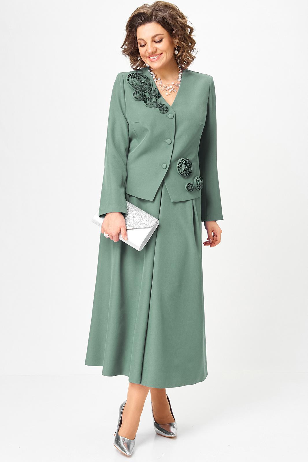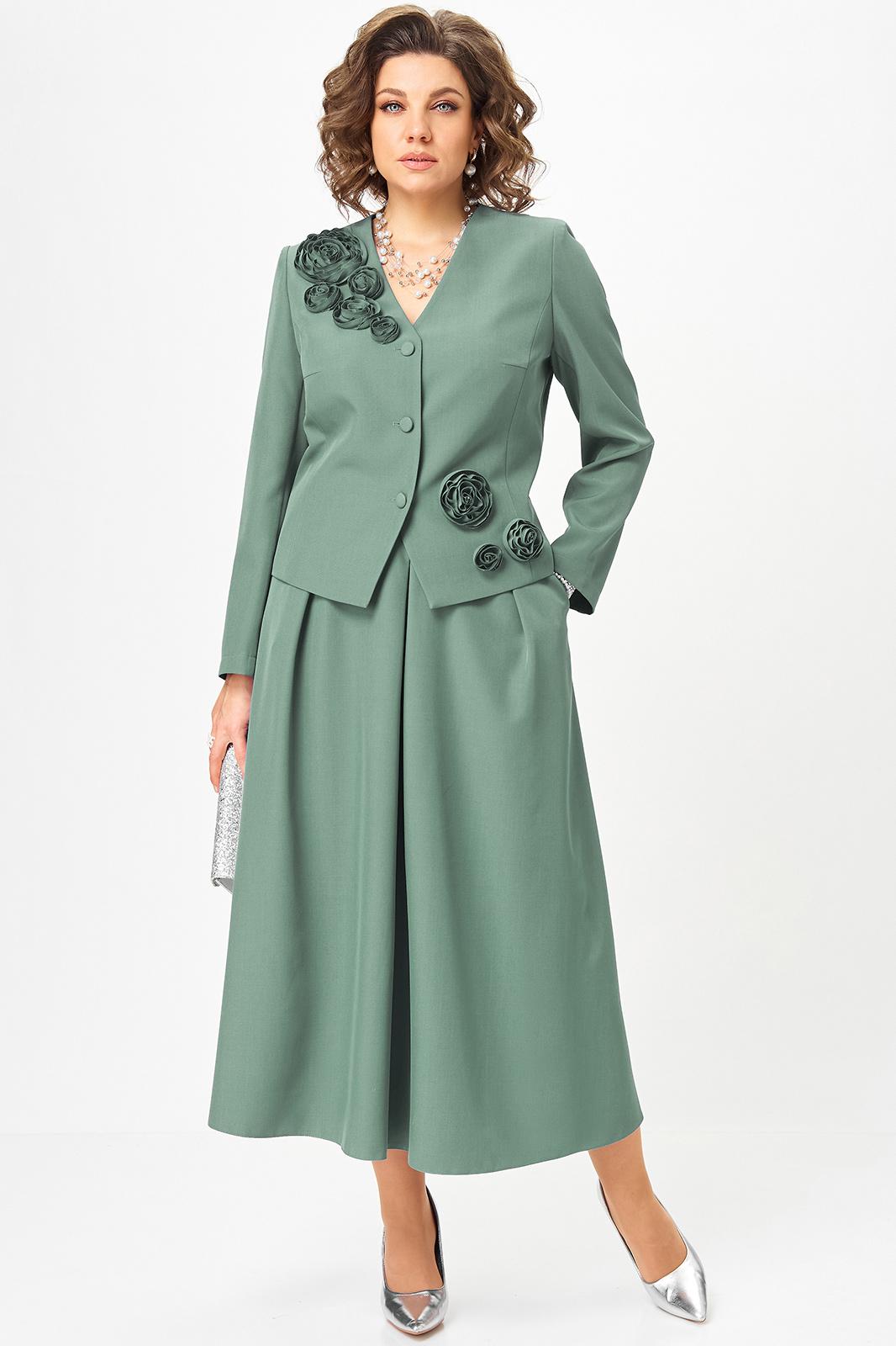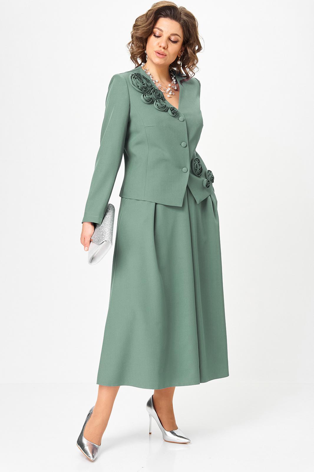 Элегантный юбочный костюм, стильный и универсальный наряд для торжественных и праздничных мероприятий. Обеспечит вашему образу максимум внимания и комплементов , благодаря безупречному подбору цвета и художественному оформлению цветочной аппликации ! Жакет с подкладкой по полочке , полуприлегающего силуэта с v образным вырезом , рукав втачной двух шовный . Юбка без подкладки, на поясе с боковыми резинками, расклешенного силуэта со складками по переду и боковыми карманами .