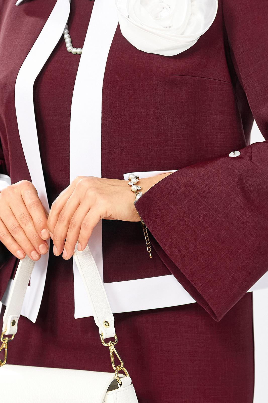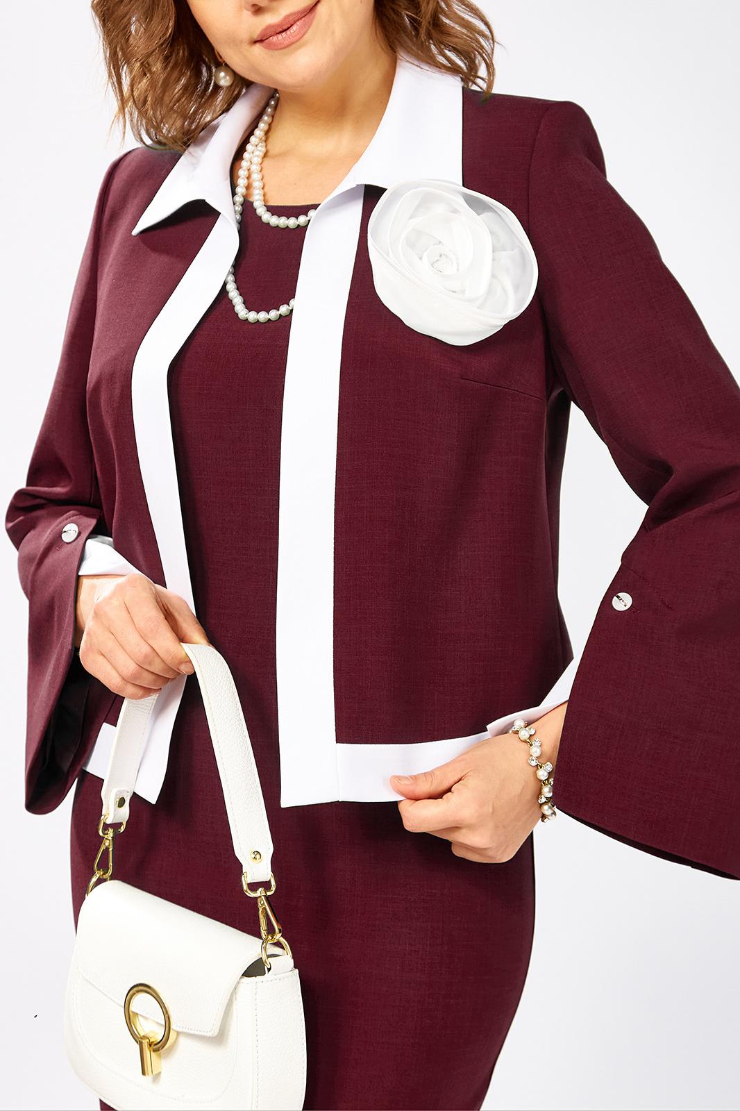 Костюм двойка, идеальный выбор для важных деловых встреч, корпоративных мероприятий и незабываемых вечерних выходов. Изысканный комплект двойка выполнен из качественной стрейчевой ткани. Жакет B L A Z E R без застежки на подкладке, рукав втачной расширенный к низу с декоративной шлицей. Платье полуприлегающего силуэта с рельефами и коротким втачным рукавом, по спинке выточки и потайная молния в среднем шве и разрез. Изящность комплекту придает контрастная отделка воротника, планок, разреза шлицы и съемного декоративного цветка ручной работы подчеркнет вашу неотразимость и безупречный вкус.