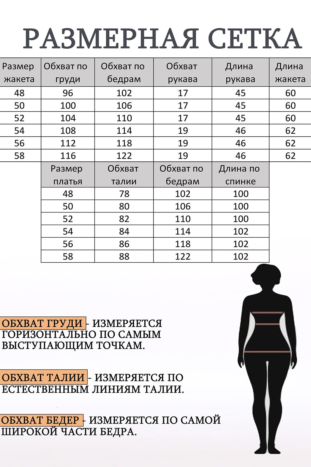 - Тип ткани: Платье- полиэстер 71%, вискоза 23%, полиуретан 6%; Жакет - полиэстер 75%, вискоза 24%, полиуретан 1%