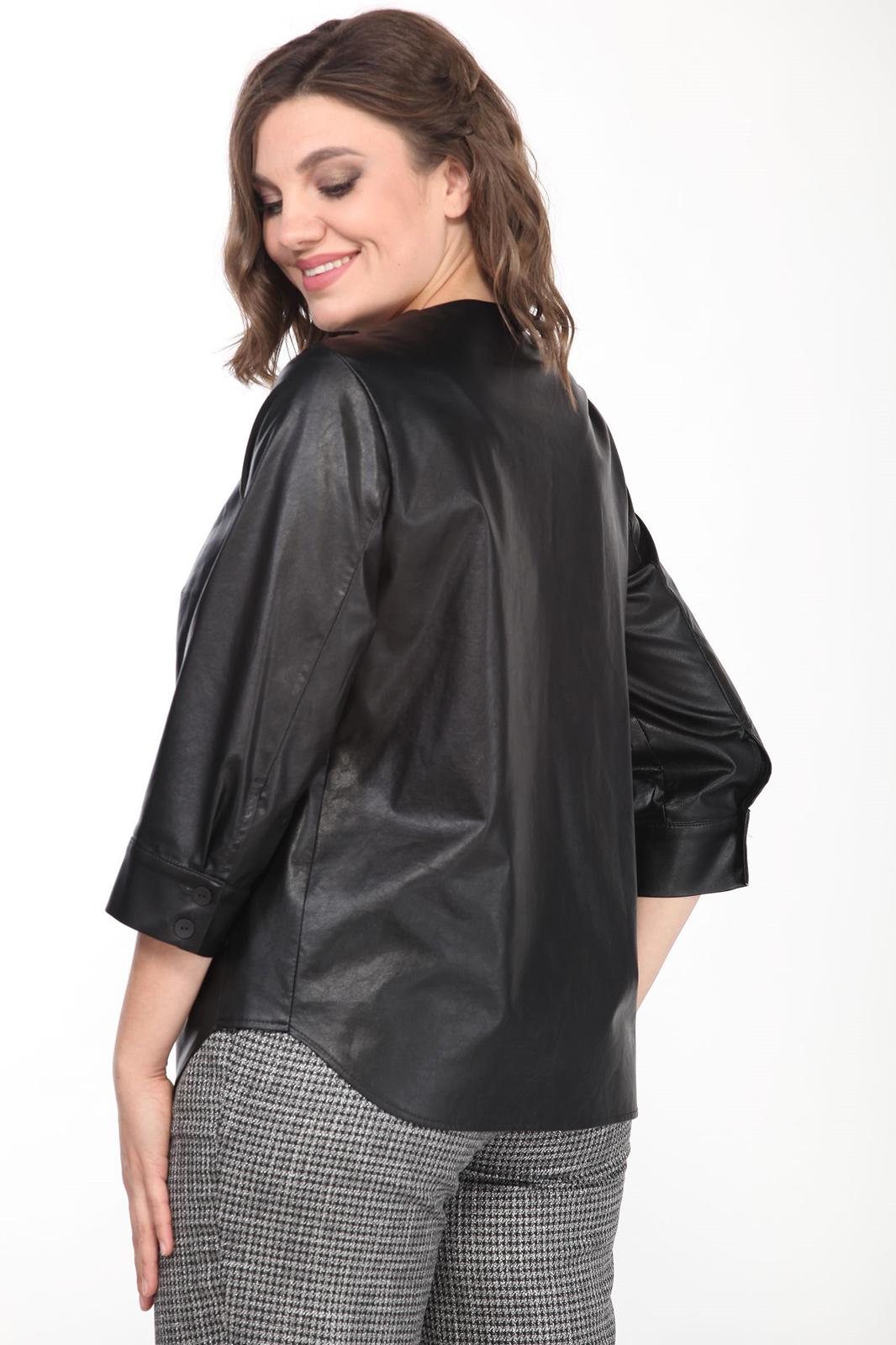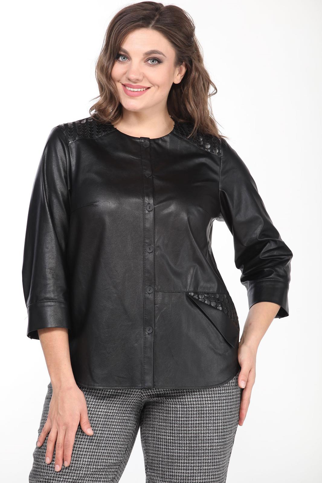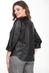 Жакет женский для торжественных случаев, из кожи. Жакет прямого силуэта, с круглым вырезом горловины, с нагрудными вытачками и кокеткой по переду. Центральная застежка на 6 петель и пуговиц на отрезной планке. На левой детали переда фигурный карман с отворотом. Жакет с отрезными бочками. Спинка цельная. Рукав втачной, двухшовный, с притачной манжетой, застегивающийся на 2-е петли и пуговицы. По шву притачивания манжета, заложена складка. Разрез рукава в локтевом шве, по которому проложена отделочная строчка на расстоянии 0,5 см от среза. Рукав длиной 3/4. Кокетка переда и подзор кармана выполнены из отделочной ткани, гармонизирующий с основным материалом изделия. Низ жакета фигурный.