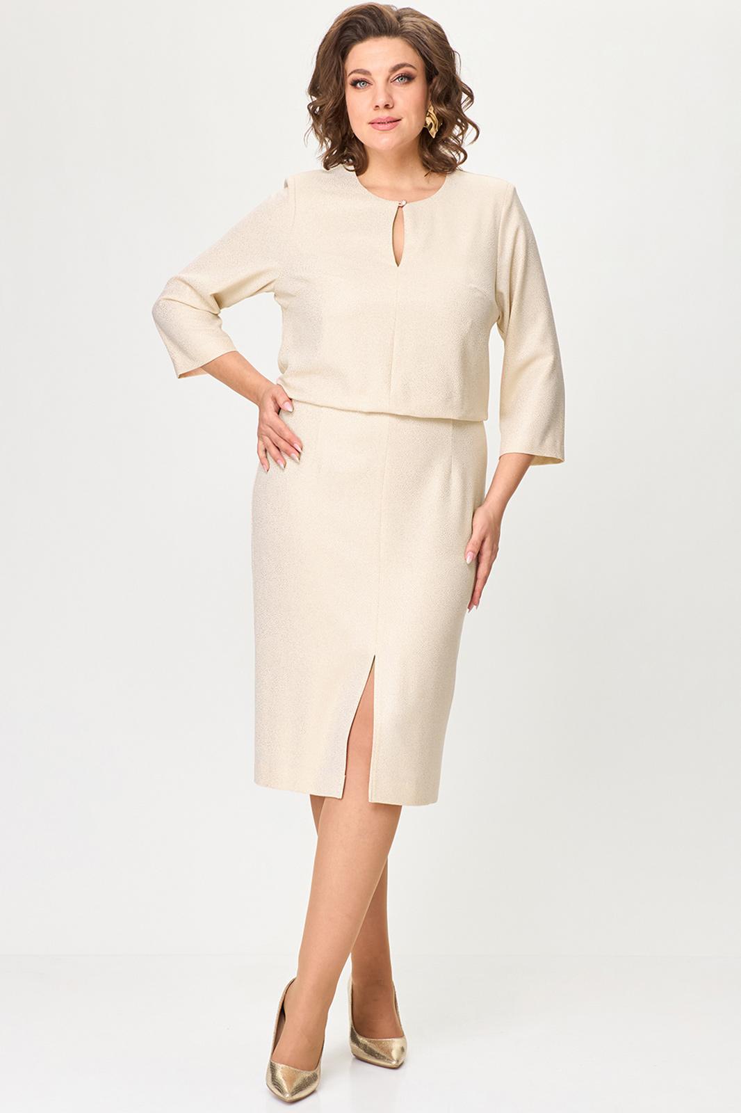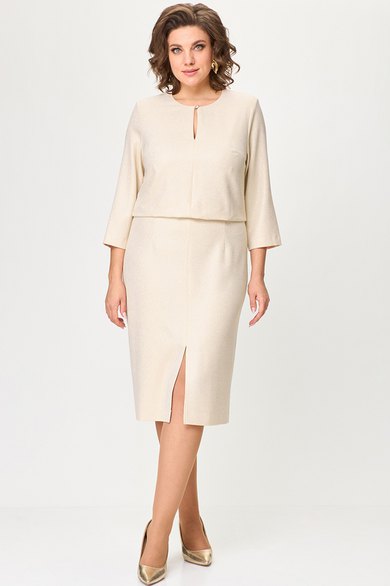 Платье праздничное нарядное женское, на подкладке, для торжественных случаев. Платье полуприлегающего силуэта, с круглым вырезом горловины. Платье отрезное по линии талии, с небольшим напуском.Лиф переда со средним швом и нагрудными вытачками. Спинка со средним швом, потайной молнией и разрезом в среднем шве. Юбка платья с талиевыми вытачками и разрезом в среднем шве. Рукава втачные, одношовные, 3/4. Платье вечернее для девушки, женщины бренда Леди - стиль классик.