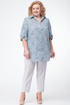 Комплект 2-х предметный (блузка, брюки). Блузка свободного кроя выполнена из текстильной вискозы. Длина блузки по спинке 82 см Рукав, фиксируемый «патой», с пуговицей. Длина рукава 40 см. Брюки, зауженные к низу, длиной 96 см. Пояс притачной, частично на резинке.