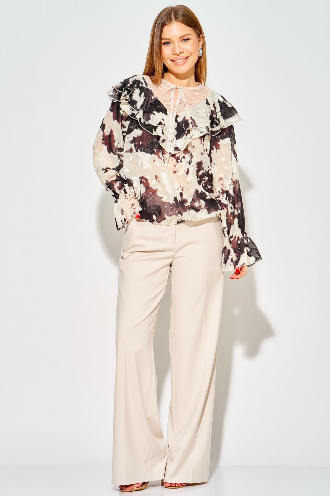 Наша блуза составит нарядный образ с брюками L-942-2 (на фоото) - и вы будете блистать на любом торжественном мероприятии.
