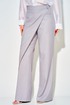 Брюки идеально подчеркивают фигуру, плотно облегая верхнюю часть и плавно переходя в прямой крой к низу. Уникальный элемент — элегантный запах, который добавляет нотку изысканности и утонченности. Пояс-кокетка обеспечивает комфорт благодаря вставленной эластичной тесьме на спинке. Застежка на потайную молнию в левом боковом шве и петлю-пуговицу. Вытачки на задних частях обеспечивают идеальную посадку, а шлёвки на поясе позволяют легко дополнить образ стильным ремнем.