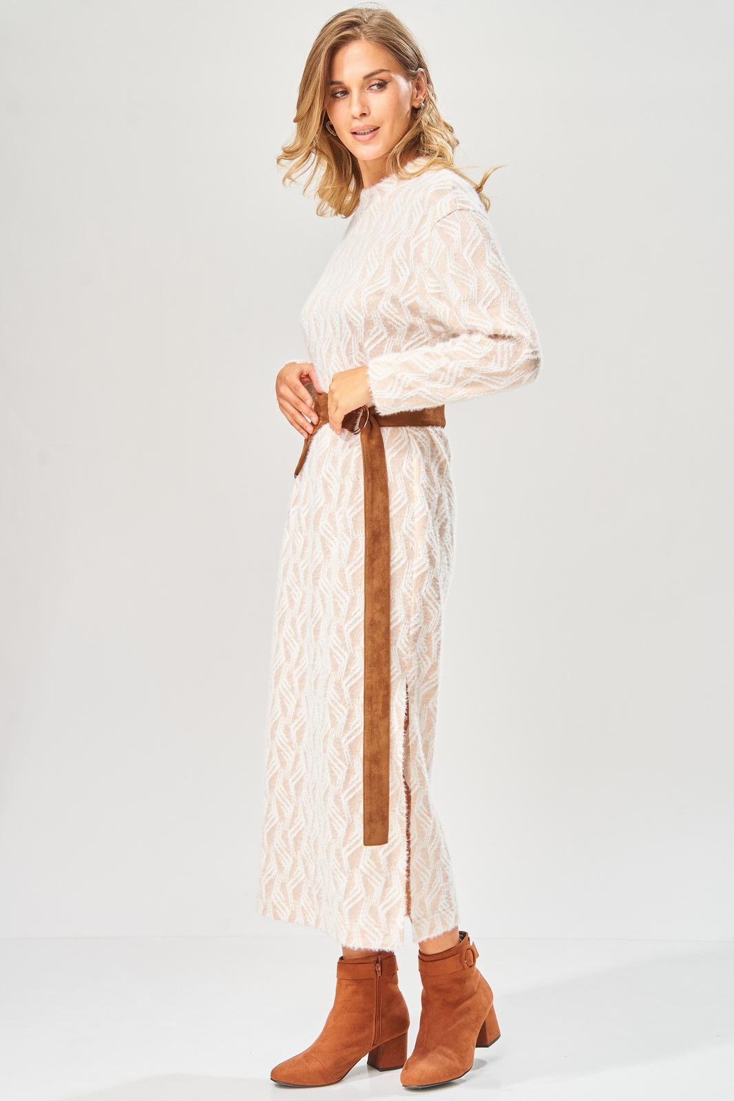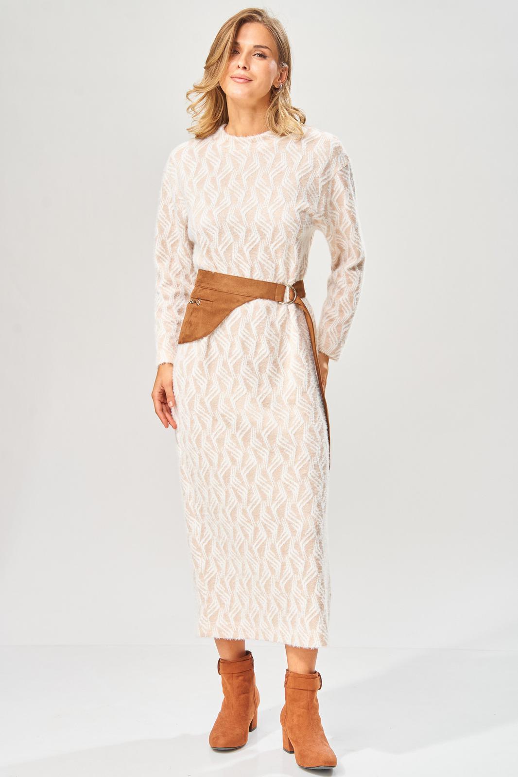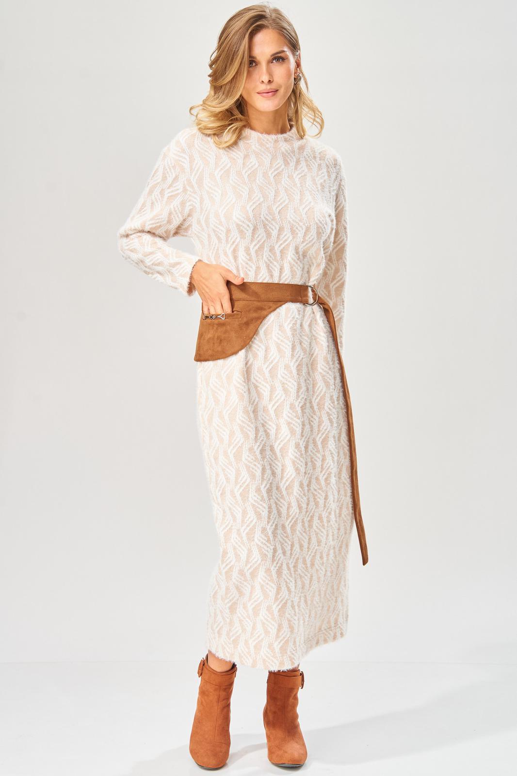 Уютное стильное повседневное платье длиной в пол с оригинальным поясом для осенне-зимнего сезона.
