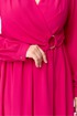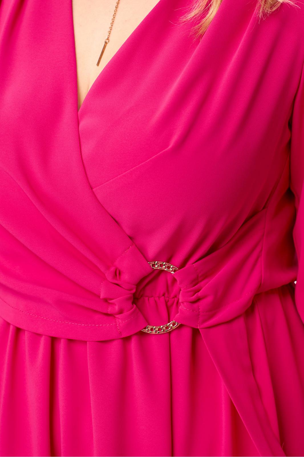 спинке - одна. Вырез горловины платья «V-образной» формы, обработан обтачкой. Длина рукава - 63см, ширина рукава – 21см, длина спинки – 121см.