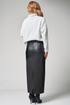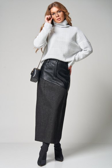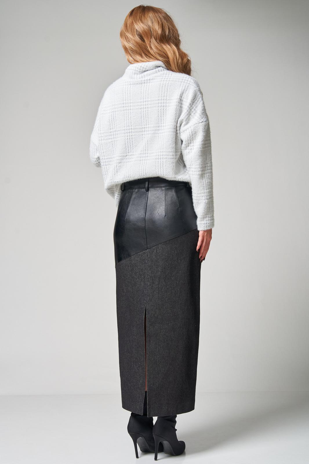 Стильная комбинированная юбка из экокожи и джинса от Laikony длиной «в пол».