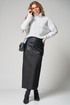 Юбка плотно облегающая вверху и прямая к низу. Застежка на тесьму-молнию и 1 кнопку. Переднее полотнище юбки со средним швом и асимметричным горизонтальным подрезом. В верхней части юбки обработаны карманы фигурной формы, нижняя часть с рельефными складками. Заднее полотнище юбки с вытачками, асимметричным подрезом и средним швом, который заканчивается разрезом. По поясу юбки прикреплены 5 шлевок.