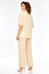 Брюки длинные, на основе классического кроя, оформлены притачным поясом (по бокам резинки), застежка "молния" + пуговица. По боковым швам брюк - шлицы с двумя пуговицами.