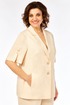 Жакет средней длины, полуприлегающего силуэта, выполнен на основе классического кроя, облегченный ( только полочки переда на подкладе). Отложной воротник и лацканы, застежка на две пуговицы. Впереди рельефы от проймы + вытачки и внутренние карманы, по спинке - центральный шов. Рукав короткий, со шлицей и двумя пуговицами по внешнему шву.