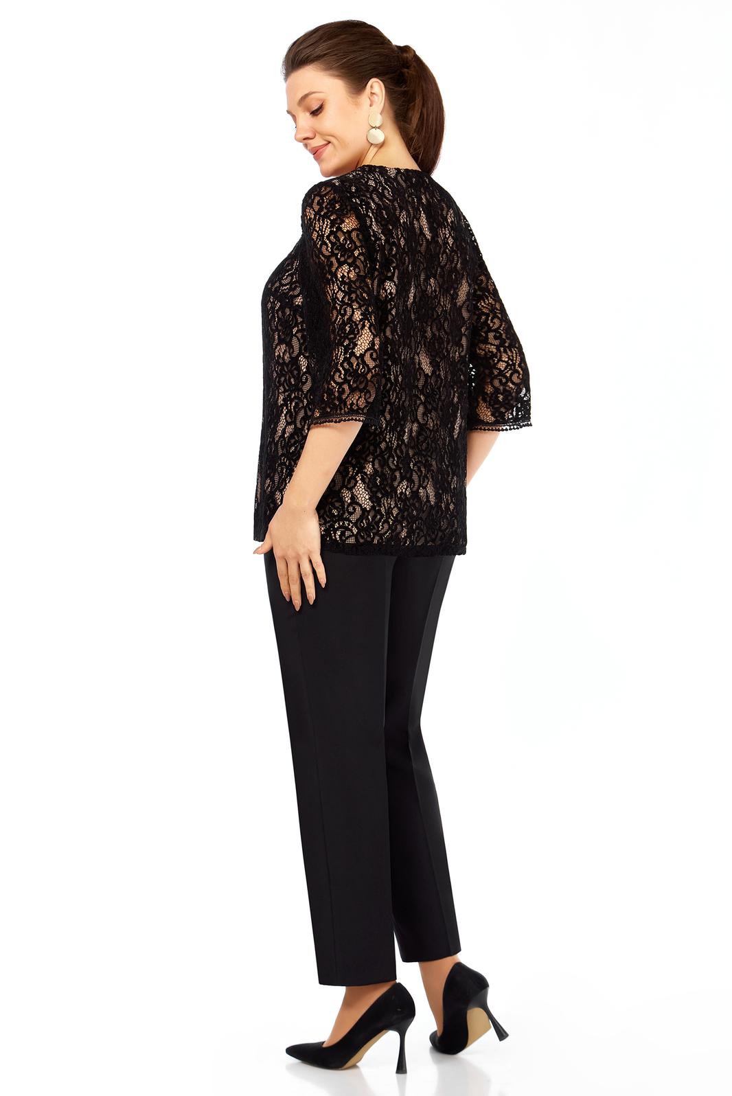 Элегантный комплект, сочетающий утонченность и комфорт. Свободная туника средней длины из роскошного бархатного кружева. Рукав ¾ украшен изящной кружевной тесьмой, подчеркивающей детальность модели. Туника на подкладке, что обеспечивает идеальную посадку по фигуре и гарантирует непросвечиваемость.