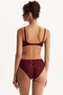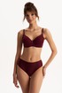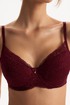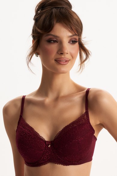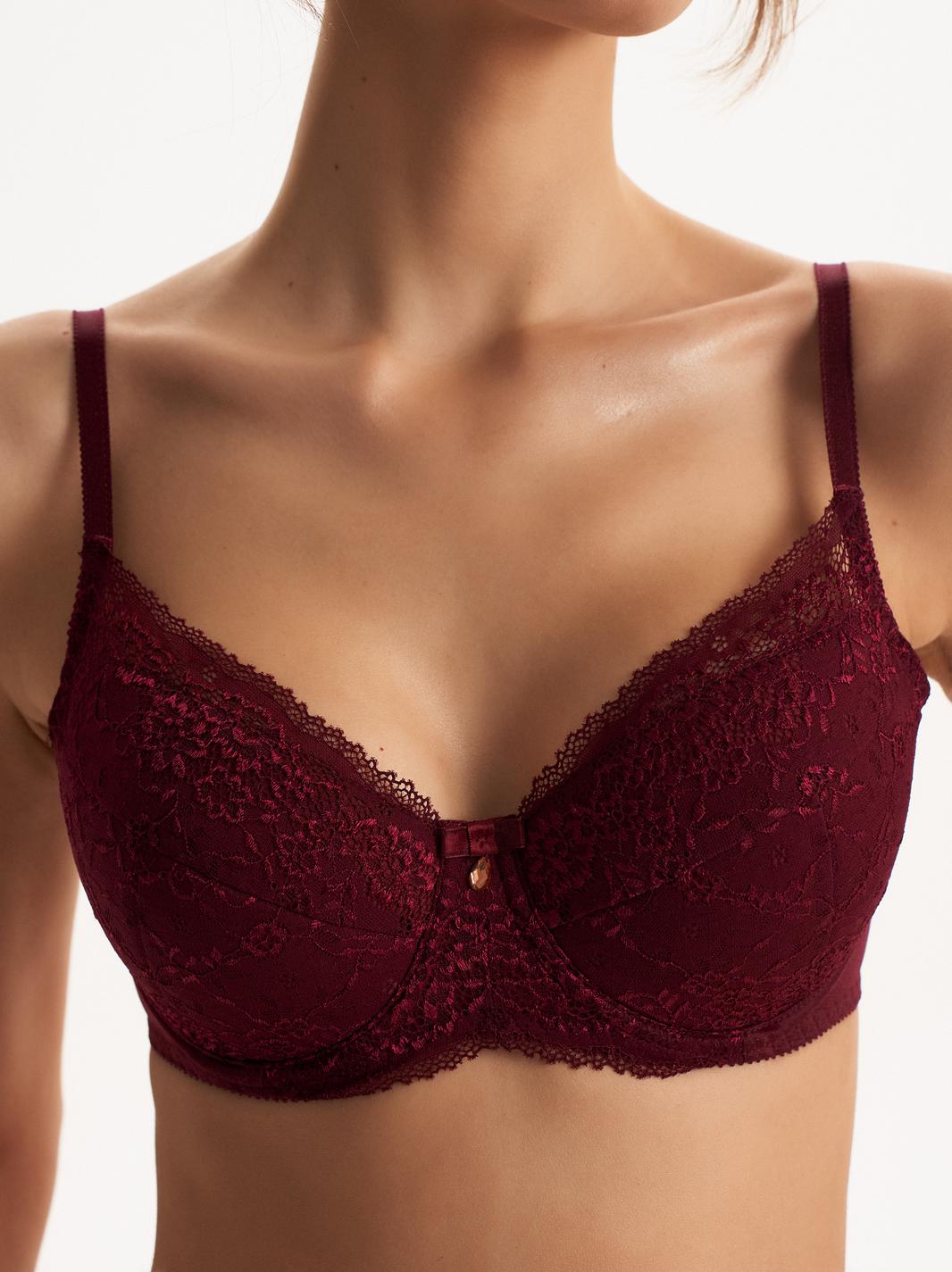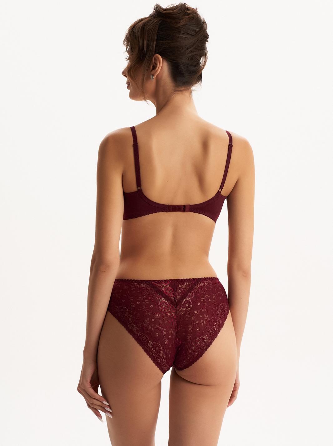 Бюстгальтер из эластичного кружева и эластичного трикотажного полотна на среднюю размерную группу. Чашка выполнена из дубляжа, присутствуют каркасы («косточки»).