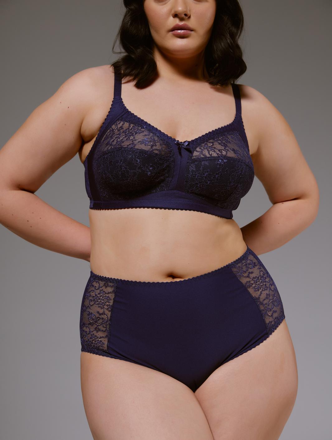 Полноразмерные трусы слипы с высокой линией талии (закрывают пупок), выполненные из эластичного трикотажного полотна (микрофибра) и декорированные вставками из кружева по бокам. Подкладка ластовицы из 100% х/б.