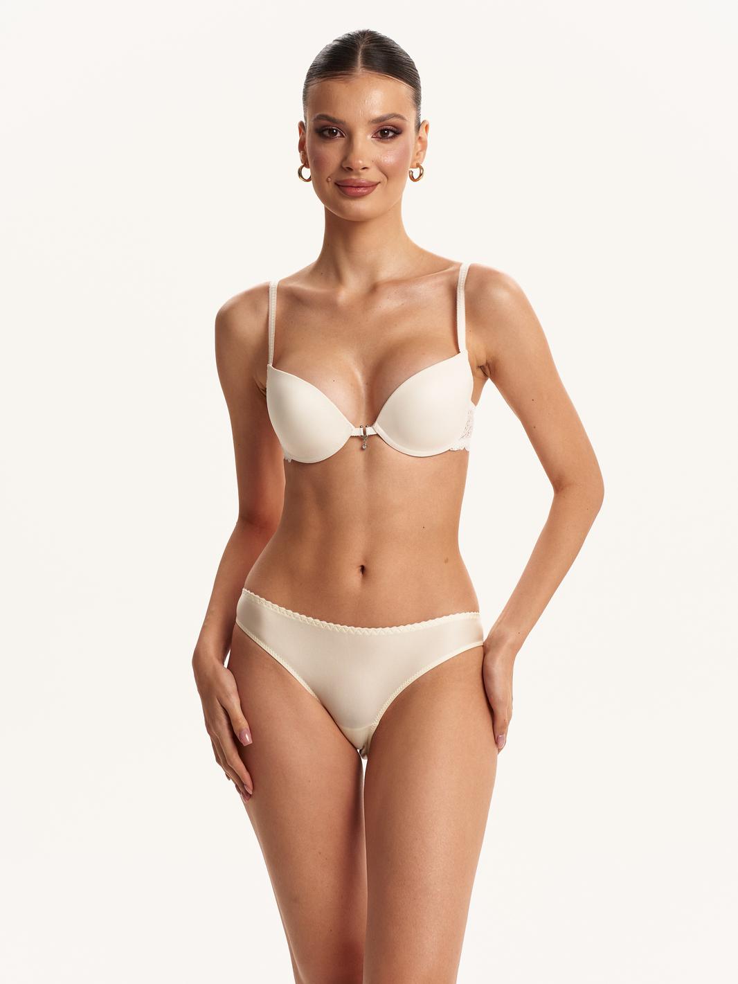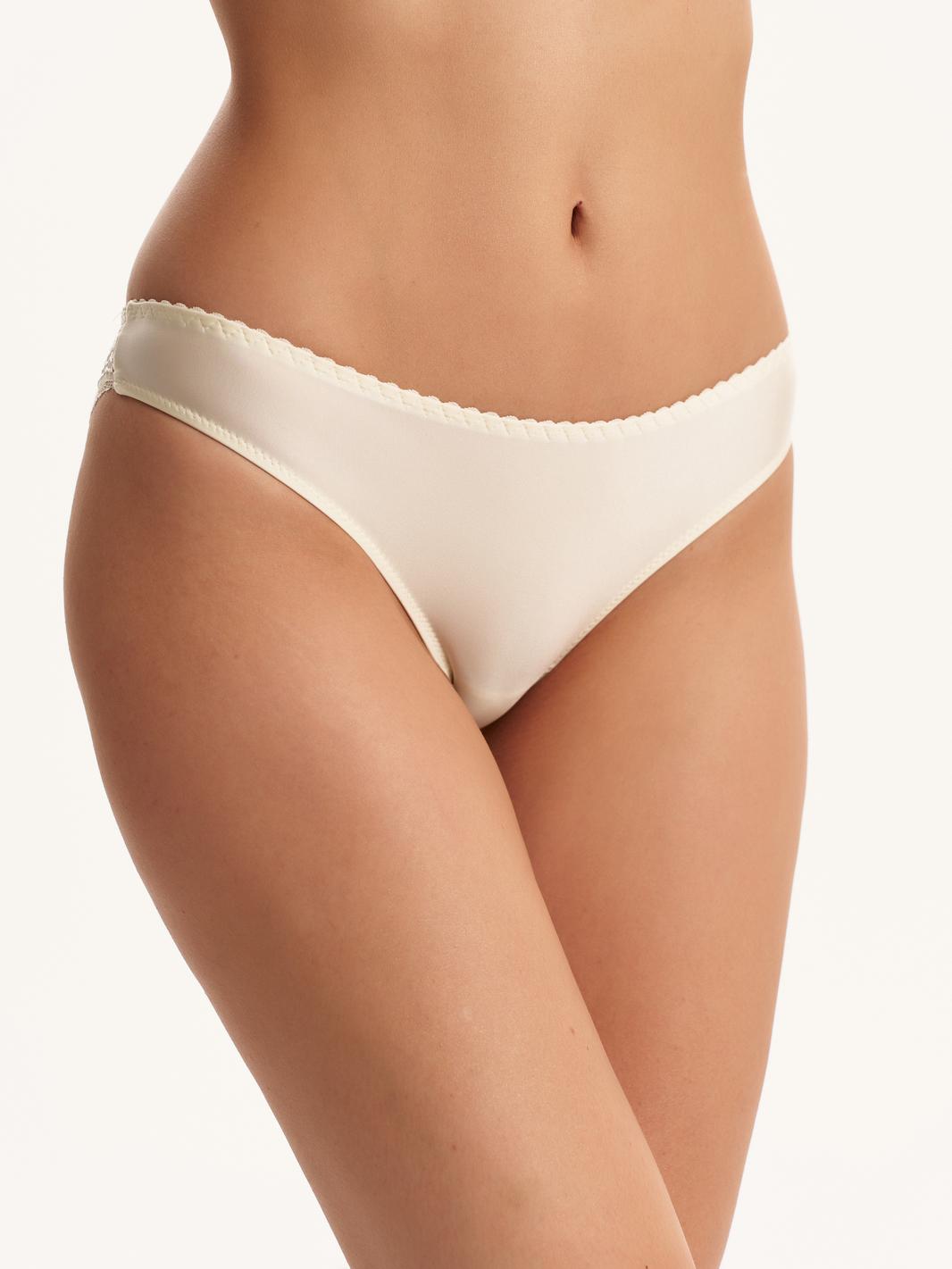 Трусы-слипы с низкой линией талии из эластичного трикотажного полотна (микрофибра). Задняя деталь полностью из эластичного кружева. Подкладка ластовицы из 100% х/б.