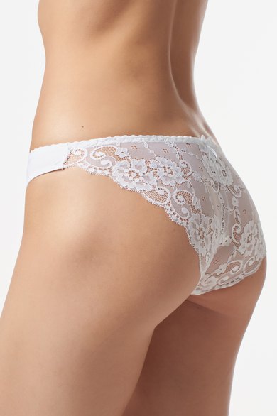 Трусы-слипы с низкой линией талии из эластичного трикотажного полотна (микрофибра). Задняя деталь полностью из эластичного кружева. Подкладка ластовицы из 100% х/б.