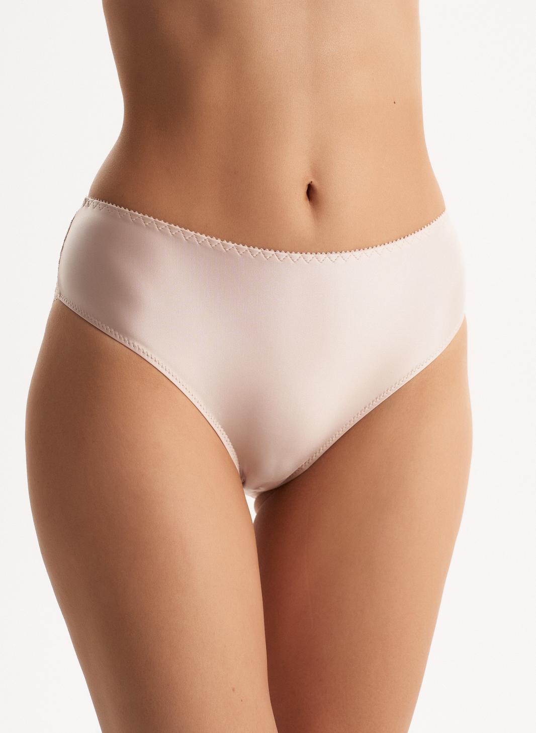 Трусы с высокой линией талии из эластичного трикотажного полотна (микрофибра). Задняя деталь полностью из эластичного кружева. Подкладка ластовицы из 100% х/б.