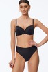 Трусы с высокой линией талии из эластичного трикотажного полотна (микрофибра). Задняя деталь полностью из эластичного кружева. Подкладка ластовицы из 100% х/б.