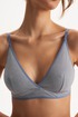 Бюстгальтер-балконетт выполнен из эластичного трикотажного полотна. Мягкие чашки треугольной формы без подкладки, без каркасов. Бретели регулируются по длине.