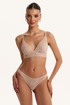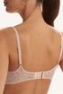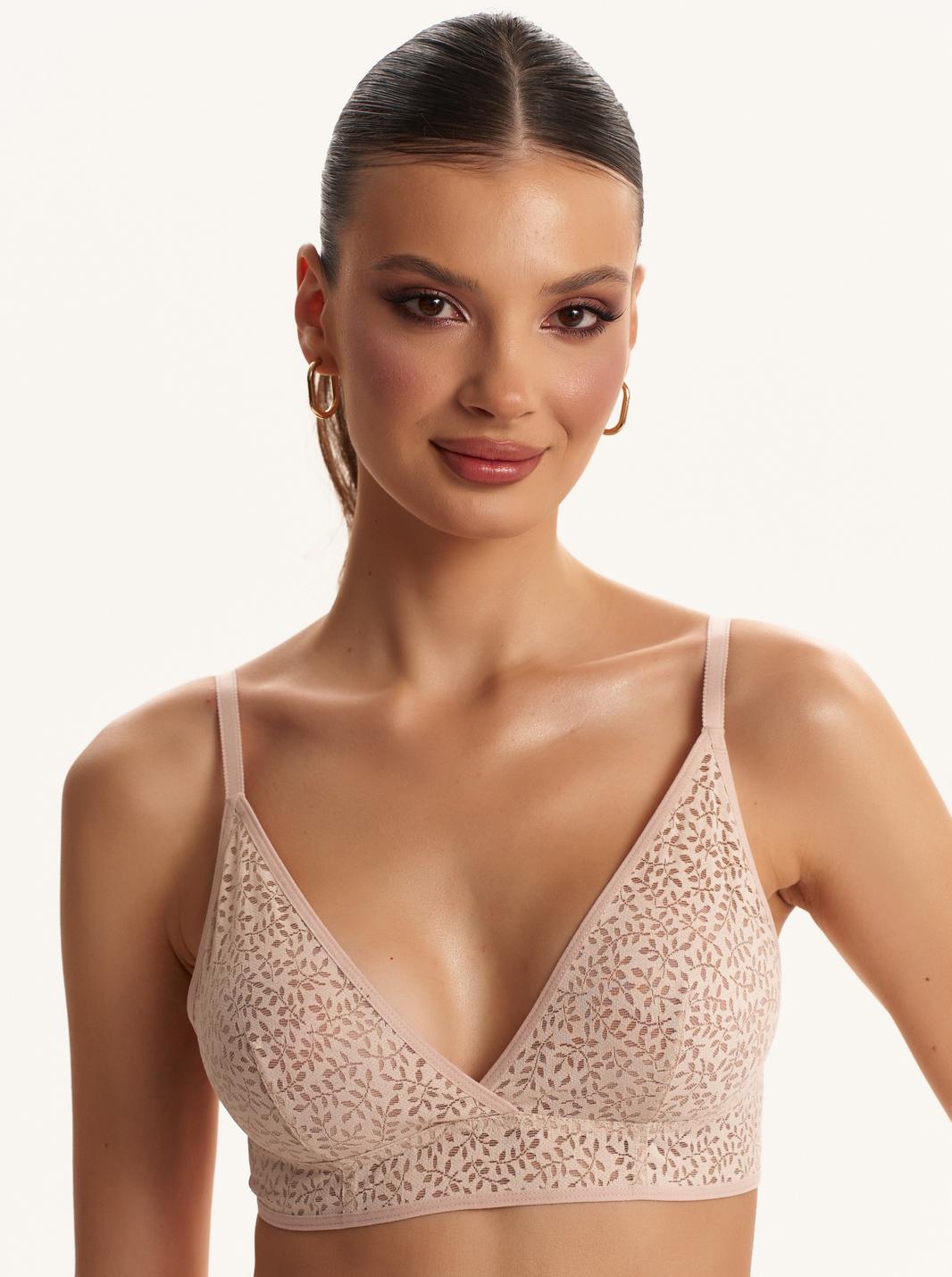 Бюстгальтер-балконетт выполнен из эластичного трикотажного полотна. Мягкие чашки треугольной формы без подкладки, без каркасов. Бретели регулируются по длине.