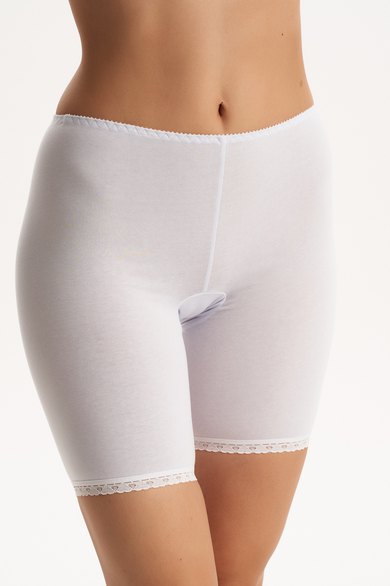 Хлопковые трусы-панталоны с высокой линией талии. Панталоны имеют вшивную ластовицу, обеспечивающую свободу движения. «Ножки» панталонов декорированы эластичной тесьмой.