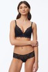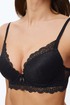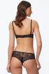 Бюстгальтер с формованной чашкой (минимальный эффект «пуш-ап») и удлинённым кружевным станом, декорированный эластичным кружевом по всей чашке. В модели присутствуют каркасы («косточки»). Широкие кружевные бочки укреплённые пластиной. Бретели регулируются по длине