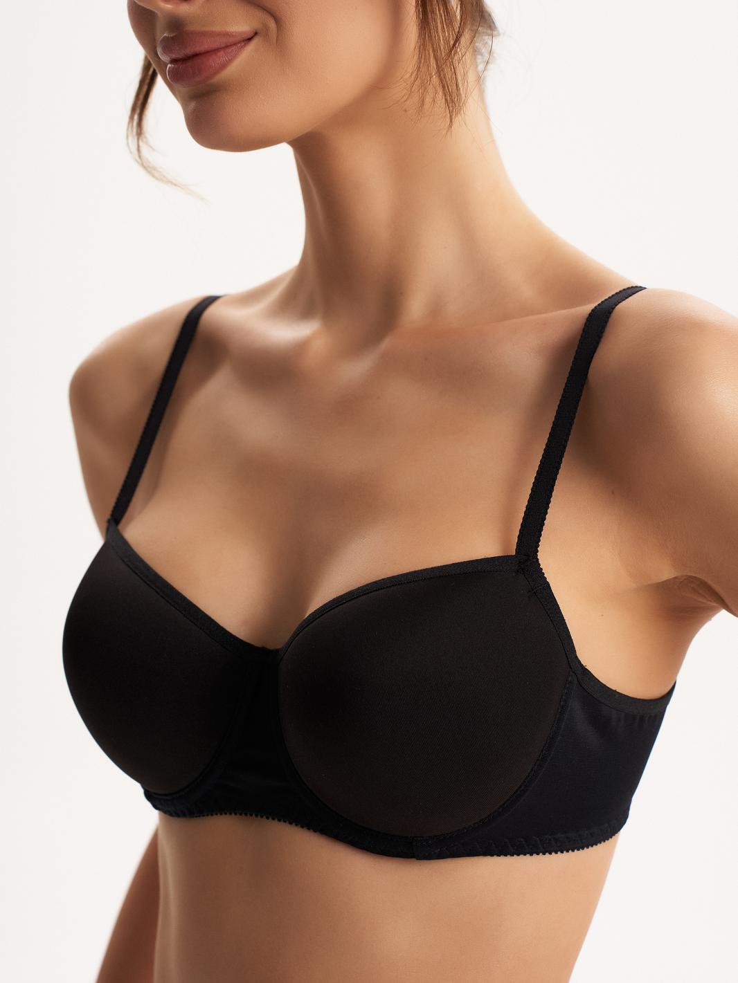 Бюстгальтер с формованной чашкой «спейсер», ее инновационный 3D-материал, используемый для создания бюстгальтера, его ведущая особенность в уникальной «вспененной» структуре, именно она позволяет воздуху проходить, тем самым предоставляя возможность коже дышать. Мягко облегает грудь, повторяя ее естественную форму. Бочки выполнены из эластичного трикотажного полотна, а гладкие чашечки остаются абсолютно незаметными под одеждой. В модели присутствуют каркасы (косточки).