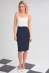Юбка на подкладке, прямая, немного зауженная к низу, на прямом поясе, со шлицей. Застежка на потайную тесьму-молнию в среднем шве заднего полотнища.