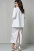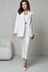 Жакет прямого силуэта на подкладке. Перед с декоративными вытачками и функциональными карманами в рамку. Воротник пиджачного типа. Застежка центральная бортовая застегивающаяся на 2 декоративных пуговицы, край борта закруглен. Рукав длинный втачной со шлицей и с 4-мя декоративными пуговицами.