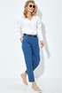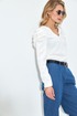 Джемпер полуприлегающего силуэта с V- образным вырезом. Длинный рукав с оборками.