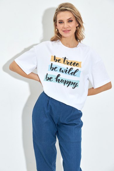 Объемная футболка с принтом. Круглый вырез горловины, короткий рукав.