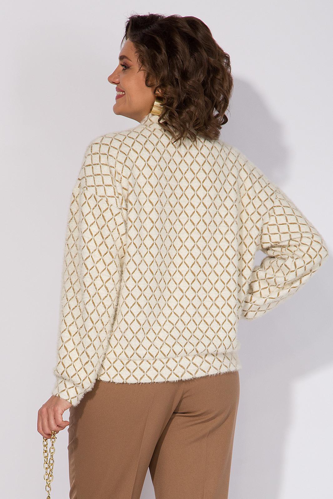 Мягкий и уютный джемпер в стиле «O L D M O N E Y» выполнен из трикотажа с эффектом ангоры с рисунком. Эффектная V-образна горловина, переходящая в мягкую стойку. Плечевой пояс спущенный, с рукавом полной длины. Низ изделия и низ рукава оформлен притачными манжетами из основной ткани. Спинка без особенностей.